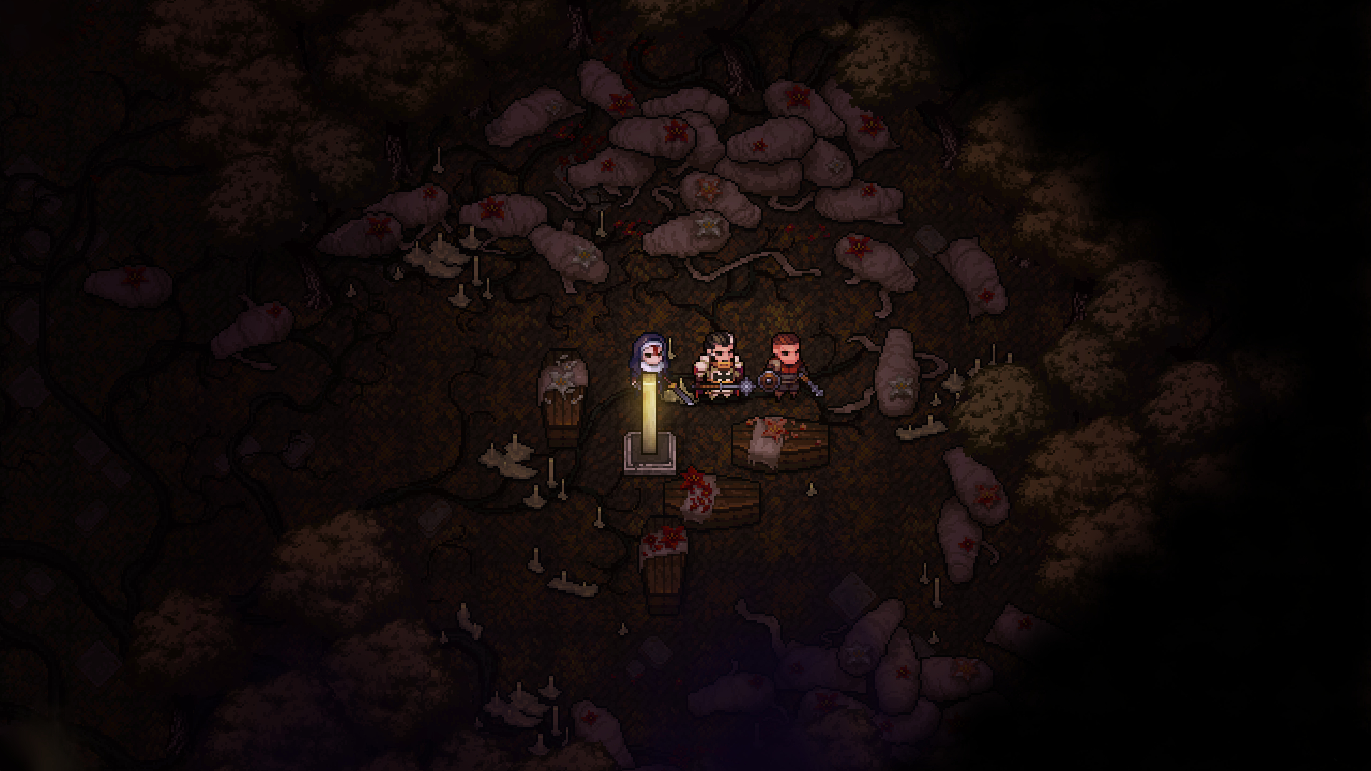 The "Dark Shroud," which has turned the REMORE people into monsters, continues to erode the expedition's Willpower, slowly consuming them. Before the Dark Shroud destroys the will of the expedition, they must illuminate the "Guiding Pillar" and return to their hideout, The Catacombs beneath the city.